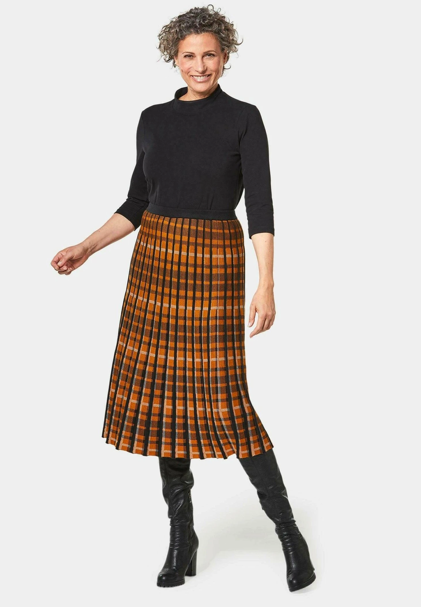 GOLDNER Jupe Trapèze – Amber / Black / Patterned