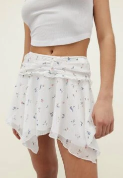 Stradivarius Printed With Pointed Detail – Minijupe – White