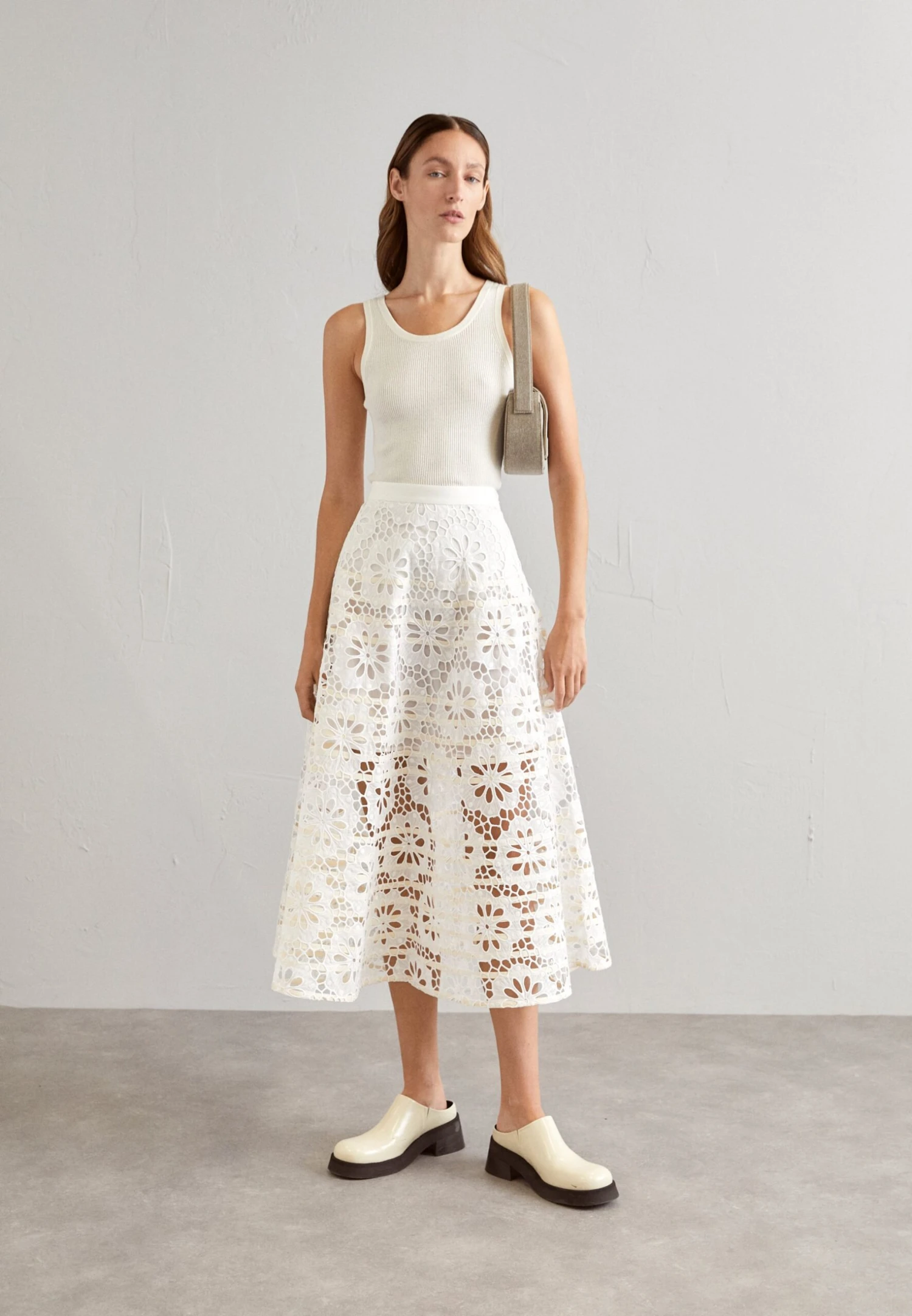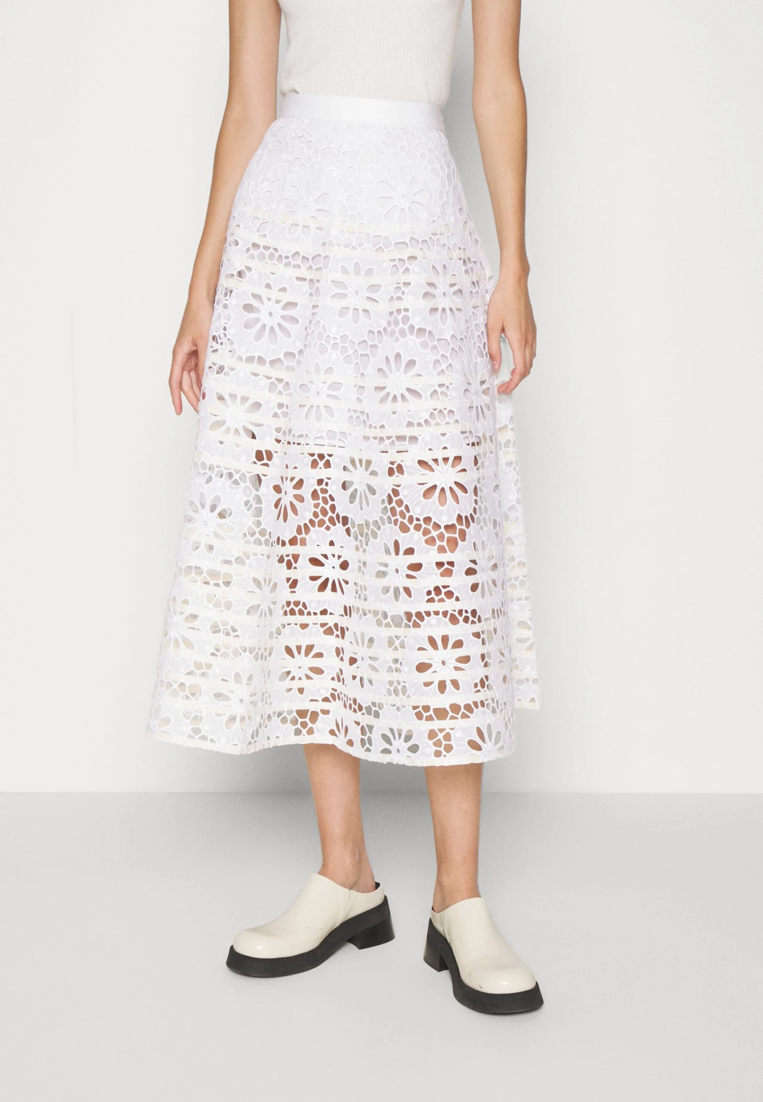 Tory Burch Eyelet Skirt – Jupe Trapèze – White